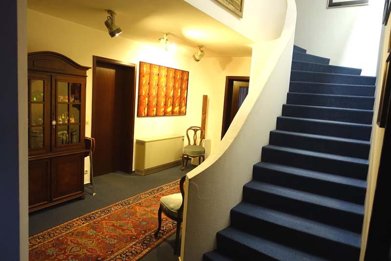 ein paar Bäumen wieder eine Biegung und ein schmaler Seitenweg